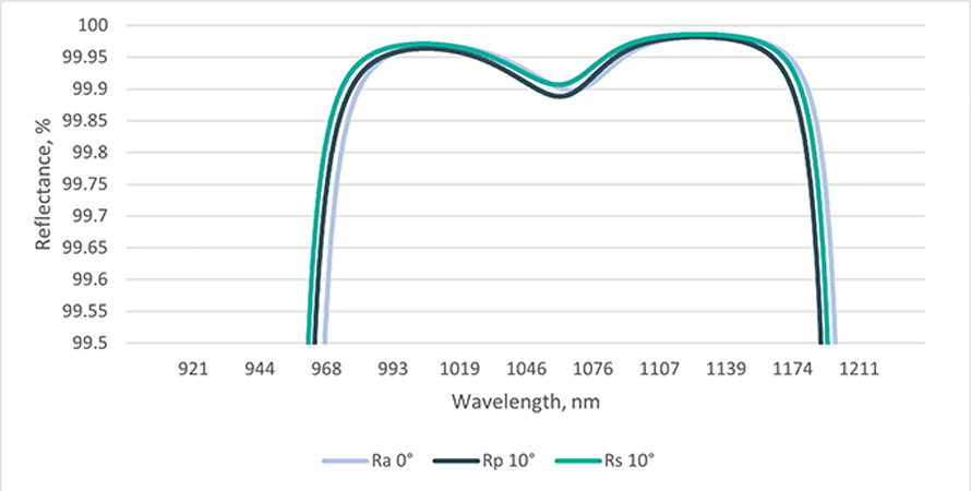 | 入射角度(°) | 0 - 10 | 镀膜参数 | S1:HRp & HRs >99.8% @ 1010 - 1050 nm / S2:Uncoated |