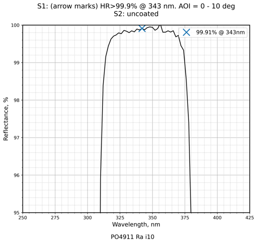 | 镀膜类型 | IBS镀膜 | 镀膜参数 | S1:HR>99.9%@343nm / S2:Uncoated |