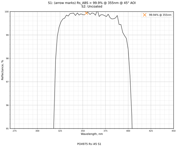 | 镀膜类型 | IBS镀膜 | 镀膜参数 | S1:Rs_abs>99.9%@355nm / S2:Uncoated |