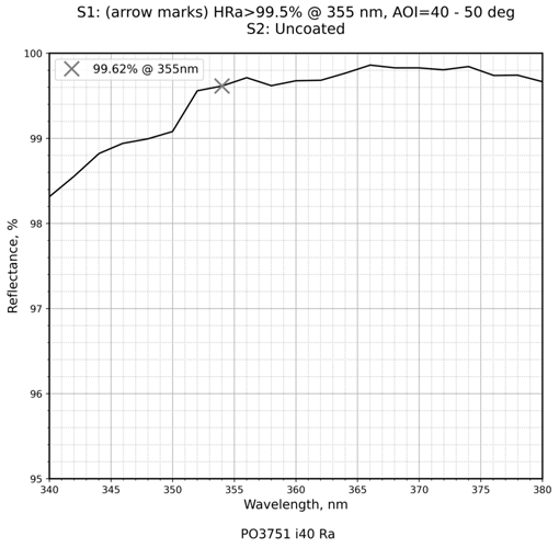 | 镀膜类型 | IBS镀膜 | 镀膜参数 | S1:HRa>99.5%@355nm / S2:Uncoated |