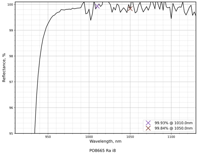 离子束溅射(IBS)镀层以其接近块体材料的超高致密性,有效抑制光学吸收并大幅提升反射率,使反射镜在苛刻的激光环境中也能表现出色并拥有极高的激光损伤阈值(LIDT)。我们提供多种曲率半径的平凹反射镜,可根据不同激光系统的设计需求,灵活选择最优光学参数,从而全面提升激光传输效率与系统稳定性。平凹反射镜表面光滑均匀,能够承受高功率激光束照射,其低热膨胀系数、高机械强度和性能稳定性,确保在高重复频率与大能量密度条件下长期可靠运行。无论是精密科研仪器、工业加工设备,还是非线性光学与超快实验平台,我们的反射镜都将为您的激光系统提供坚实的光学保障。