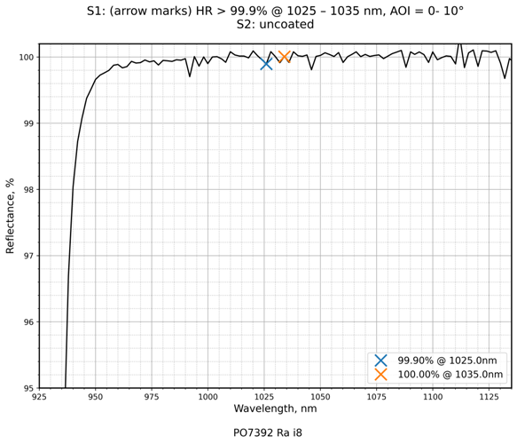 | 焦距 | -2000mm | 镀膜参数 | S1:HR>99.9%@1025–1035nm / S2:Uncoated |