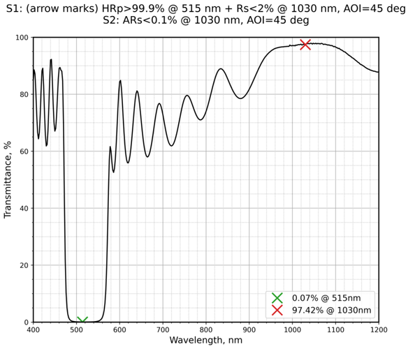 | HR波长(nm) | 515 | HT波长(nm) | 1030 | |