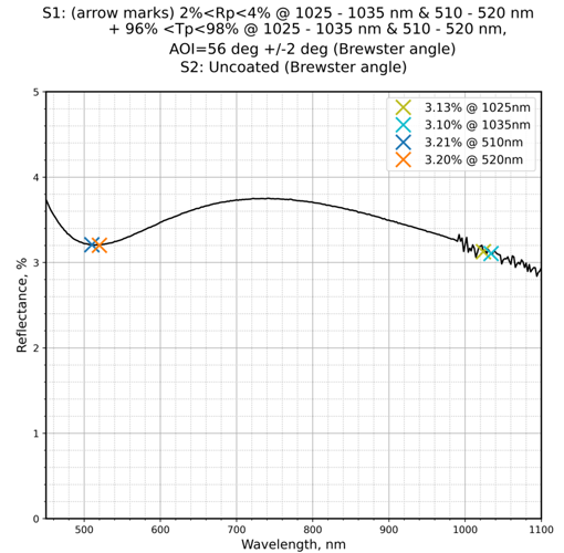 | 波长(nm) | 1030 + 515 | 表面质量S1 | 20-10 S-D over CA | |