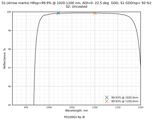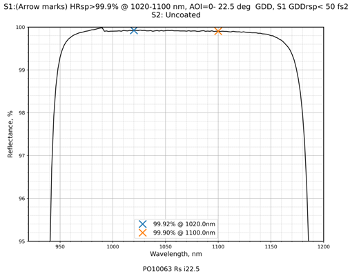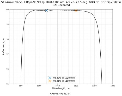 抗损伤1030nm飞秒反射镜 0-22.5°