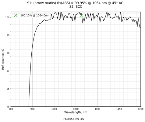 | 镀膜类型 | IBS镀膜 | 镀膜参数 | S1:Rs(ABS)>99.95%@1064nm / S2:SCC |