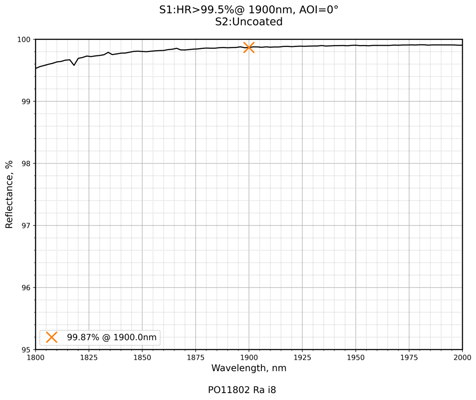 | 镀膜类型 | IBS镀膜 | 镀膜参数 | S1:HR>99.5%@1900nm / S2:Uncoated |