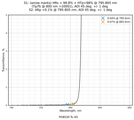 | 波长(nm) | 795 - 805 | 表面质量S1 | 10-5 SD over CA | |