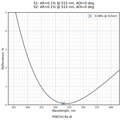 | 镀膜参数 | S1: AR<0.1%@515+1030nm / S2: AR<0.1%@515+1030nm | |||
