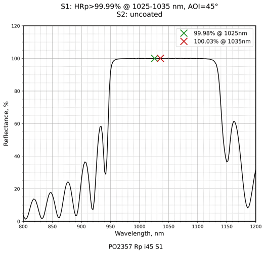 | Wavelength(nm) | 1025 - 1035 | AOI(°) | 45 | |