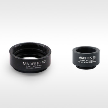 LBTEK circular mounted reflective neutral density attenuators offer an optical density (OD) range of 0.2–4.0, with optical element sizes of Ø12.7 mm and Ø25.4 mm. By coating one side of an N-BK7 substrate with a chromium-nickel-iron alloy, a stable OD curve is achieved across the 350–1100 nm wavelength range. Although classified as reflective neutral density filters, the chromium-nickel-iron alloy coating also absorbs part of the incident light. For optimal performance, incident light should enter from the chromium-nickel-iron coated side. Since this metallic coating is unprotected, care must be taken to avoid contact, as touching may scratch the surface. For cleaning, the use of an air blower is recommended. The MNDFR series reflective neutral density attenuators are pre-mounted in removable standard lens sleeves, with product model, operating wavelength, and OD value engraved on the housing for easy identification.