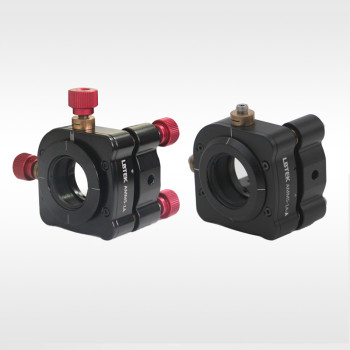 LBTEK five-axis optical adjustment mount with retaining-ring fixation allows adjustment along five axes (pitch, yaw, and XYZ translation). All five axes are lockable to ensure stability. The mount features graduated scales in both horizontal and vertical directions to assist with precise centering of the mounting slot. The back plate includes two orthogonal M4 mounting holes, enabling installation on posts for either left- or right-handed operation. It is available in versions compatible with both free-space and coaxial systems.