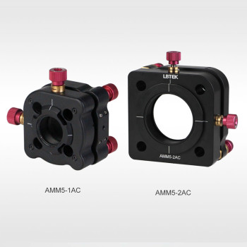 LBTEK five-axis optical adjustment mount with retaining-ring fixation allows adjustment along five axes (pitch, yaw, and XYZ translation). All five axes are lockable to ensure stability. The mount features graduated scales in both horizontal and vertical directions to assist with precise centering of the mounting slot. The back plate includes two orthogonal M4 mounting holes, enabling installation on posts for either left- or right-handed operation. It is available in versions compatible with both free-space and coaxial systems.