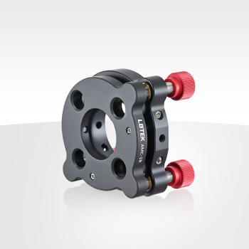 LBTEK cage system mounts are compatible with 30 mm cage systems and are designed for mounting and aligning mirrors within the system. Two mounting options are available: dual retaining ring mounting (AMC-1A, TXY1SM1) and setscrew mounting (AMC-1B). AMC-1A and TXY1SM1 feature SM1-threaded through holes and include two SM1R retaining rings, suitable for mounting Ø25.4 mm optics. The SM1 thread is compatible with all LBTEK mechanical components with SM1 threading. AMC-1B has a Ø25.4 mm smooth-bore hole and secures optics using an M4 setscrew (compatible with a 2 mm hex key), supporting optics with a minimum thickness of 3 mm. The rear panel of the mount includes four Ø6 mm through-holes for 30 mm cage system rods and side M3 or M4 setscrews for rod locking. Three M6×0.25 adjusters provide precise tip/tilt adjustment with a resolution of 0.32°/rev and allow for up to ±3 mm of linear travel. The uniquely designed adjustment knobs provide higher torque and can also be operated or tightened with a 2 mm hex key. The rear panel also includes an M4-threaded hole for direct optical post mounting.
