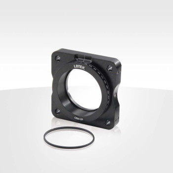 LBTEK offers two types of 60 mm cage system rotation mounts: CRM-2A and CRM-2B, both designed for mounting Ø50.8 mm optics. CRM-2A features SM2 internal threads and includes an SM2R retaining ring for securing optics up to 12.8 mm thick. CRM-2B has a smooth inner wall and secures optics with an M4 nylon-tip setscrew, supporting optics with a minimum thickness of 7.9 mm. Both mounts allow continuous 360° rotation, with 1° scale graduations and angle numbers marked every 10°. An M4 nylon-tip side setscrew (compatible with a 2 mm hex key) locks the rotation. The base includes an M4-threaded hole for direct post mounting.