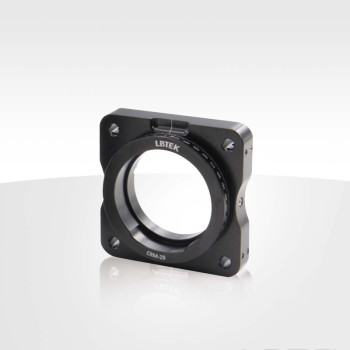LBTEK offers two types of 60 mm cage system rotation mounts: CRM-2A and CRM-2B, both designed for mounting Ø50.8 mm optics. CRM-2A features SM2 internal threads and includes an SM2R retaining ring for securing optics up to 12.8 mm thick. CRM-2B has a smooth inner wall and secures optics with an M4 nylon-tip setscrew, supporting optics with a minimum thickness of 7.9 mm. Both mounts allow continuous 360° rotation, with 1° scale graduations and angle numbers marked every 10°. An M4 nylon-tip side setscrew (compatible with a 2 mm hex key) locks the rotation. The base includes an M4-threaded hole for direct post mounting.