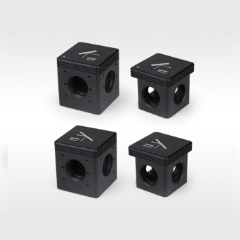 LBTEK offers magnetic quick-release cubes suitable for fluorescence filter assemblies. The cube insert allows installation of four Ø25.4 mm optical elements on its four sides using retaining rings. Inside the insert, a magnetic detachable 45° rectangular mount is included, secured by a spring-loaded mechanism and a single screw that simultaneously releases the spring when loosened. The MCM1 model has a central clamping size of 36 mm × 25 mm × 1 mm and supports optical elements up to 6 mm thick at the 3°-tilted side edge. The MCM1S model has a central clamping size of 36 mm × 25 mm × 2 mm and supports optical elements up to 4.5 mm thick at the 3°-tilted side edge. One output port of the cube insert is tilted at 3° relative to the surface to minimize unwanted reflections and is marked EM2.