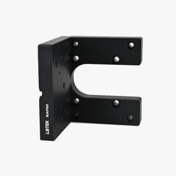 The LBTEK RAP-90A Right-Angle Adapter Plate features twelve M6 threaded holes and two M6 countersunk slots for versatile mounting and mechanical component adaptation. It is machined from a single solid aluminum block, ensuring excellent precision and rigidity. Each purchase of the LBTEK RAP-90A includes two M6 socket head cap screws.