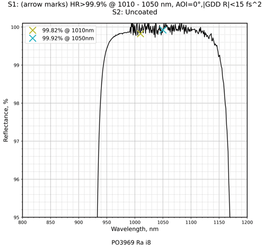 | 波长(nm) | 1010 - 1050 | GDD规格 | |GDD R|<15fs2 | |