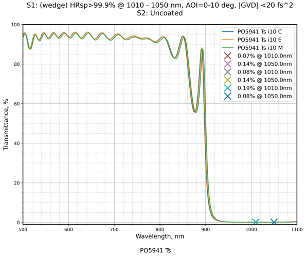 | 镀膜类型 | IBS镀膜 | 镀膜参数 | S1:HRsp>99.9%@1010-1050nm / S2:Uncoated |
