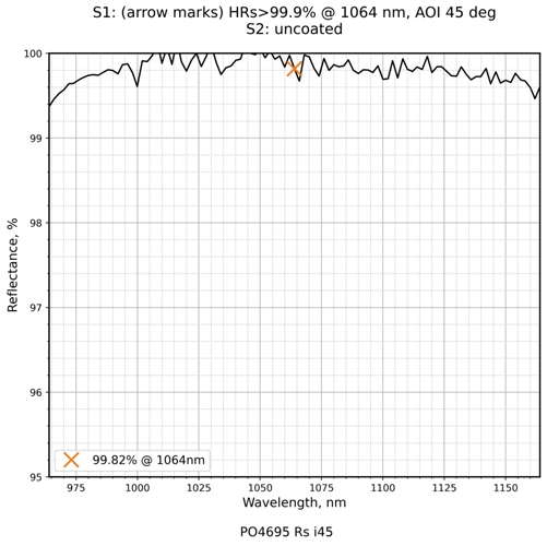 | 镀膜类型 | IBS镀膜 | 镀膜参数 | S1:HRs>99.9%@1064nm / S2:Uncoated |
