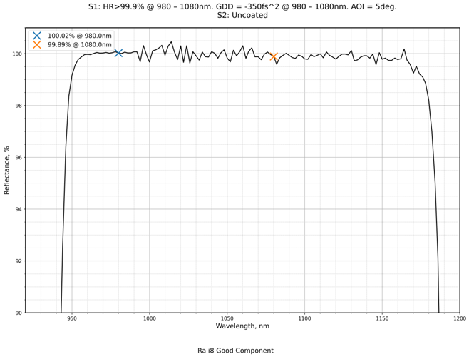| 延迟色散(fs²) | -350 | 镀膜类型 | IBS镀膜 | |
