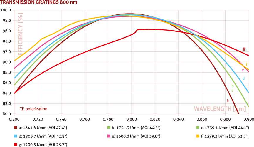 800nm透射光栅是专为钛宝石激光系统研发的高性能光学元件,特别适用于飞秒/皮秒超快激光、精密光谱学和非线性光学研究等关键应用领域。该产品采用精选的光学材料和精密制造工艺,具有优异的光学性能和热稳定性,能够承受高功率激光输出并保持长期稳定的工作状态。其特殊的光栅结构设计针对钛宝石激光器的发光特性进行了优化,在800nm中心波长附近展现出卓越的性能表现。