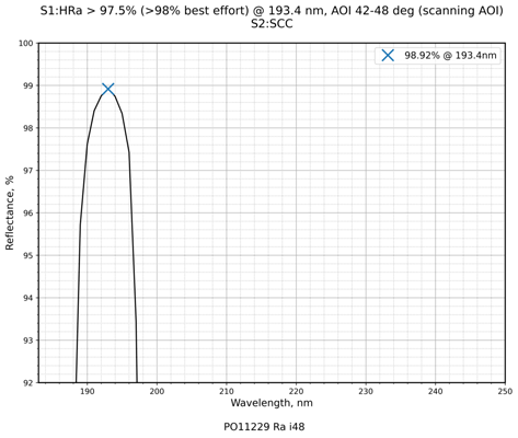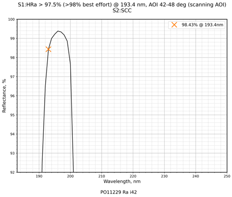 | 镀膜类型 | IBS镀膜 | 镀膜参数 | S1:HRa>97.5%(>98% best effort)@193.4nm / S2:Uncoated |