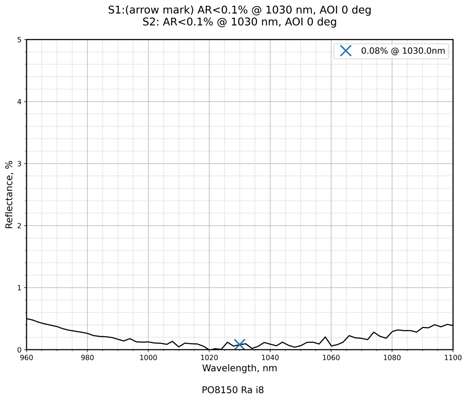 | 镀膜参数 | S1: AR<0.1%@1030nm / S2: AR<0.1%@1030nm | |||