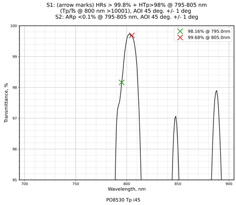 | 波长(nm) | 795 - 805 | 表面质量S1 | 10-5 SD over CA | |