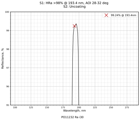 | 镀膜类型 | IBS镀膜 | 镀膜参数 | S1:HRa>98%@193.4nm / S2:Uncoated |