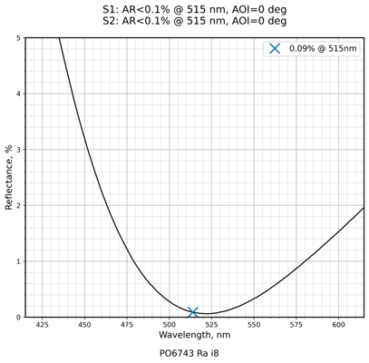 | 镀膜参数 | S1: AR<0.1%@515+1030nm / S2: AR<0.1%@515+1030nm | |||