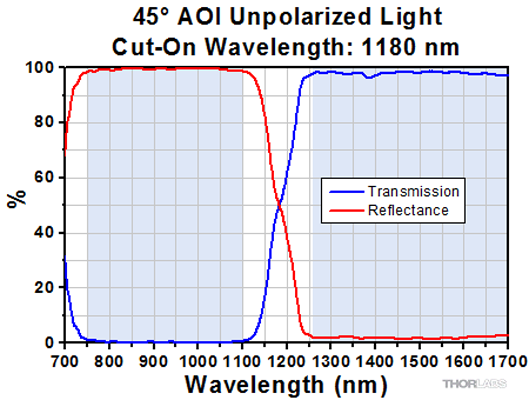 | HR波长(nm) | 750 - 1100 | HT波长(nm) | 1260 - 1700 | |