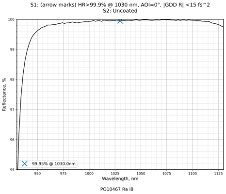 | 镀膜类型 | IBS镀膜 | 镀膜参数 | S1:HR>99.9%@1030nm / S2:Uncoated |